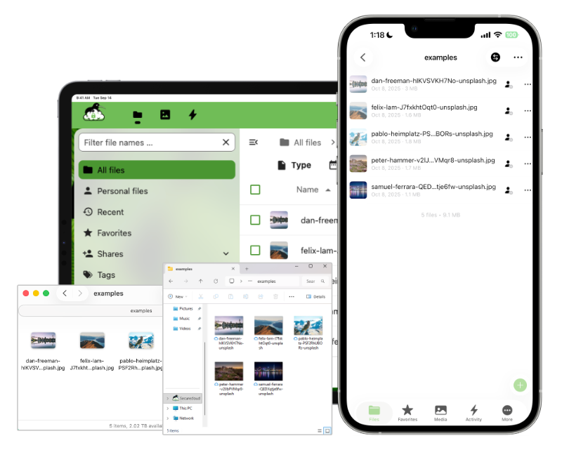 Sync your files across your laptop, mobile, and desktop - seamlessly. No more rummaging about or emailing files back and forth. With SecureCloud, everything’s in its place and up to date, whether you’re at the office, at home, or down at the bach for the weekend.